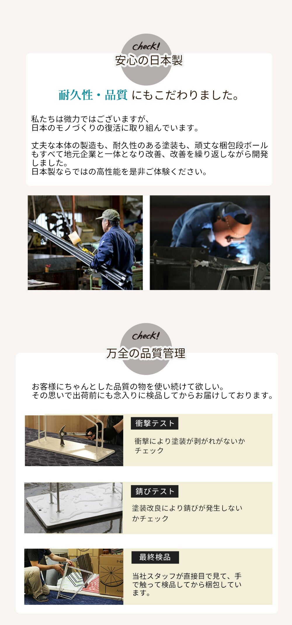 こちらの商品はすべてを地元企業のご協力により製造しています。本商品はベースの鉄板の品質、塗装前の下処理、溶接のレベル、独自塗料とすべてを最高品質で仕上げているため、長期間使用したときに全くの違いがわかります。類似品も出回っていますが、品質の低い鉄板、簡易溶接と見えない部分でコストカットしているためすぐに錆びたりする場合がございます。一生お使いいただける本商品をお勧めいたします。