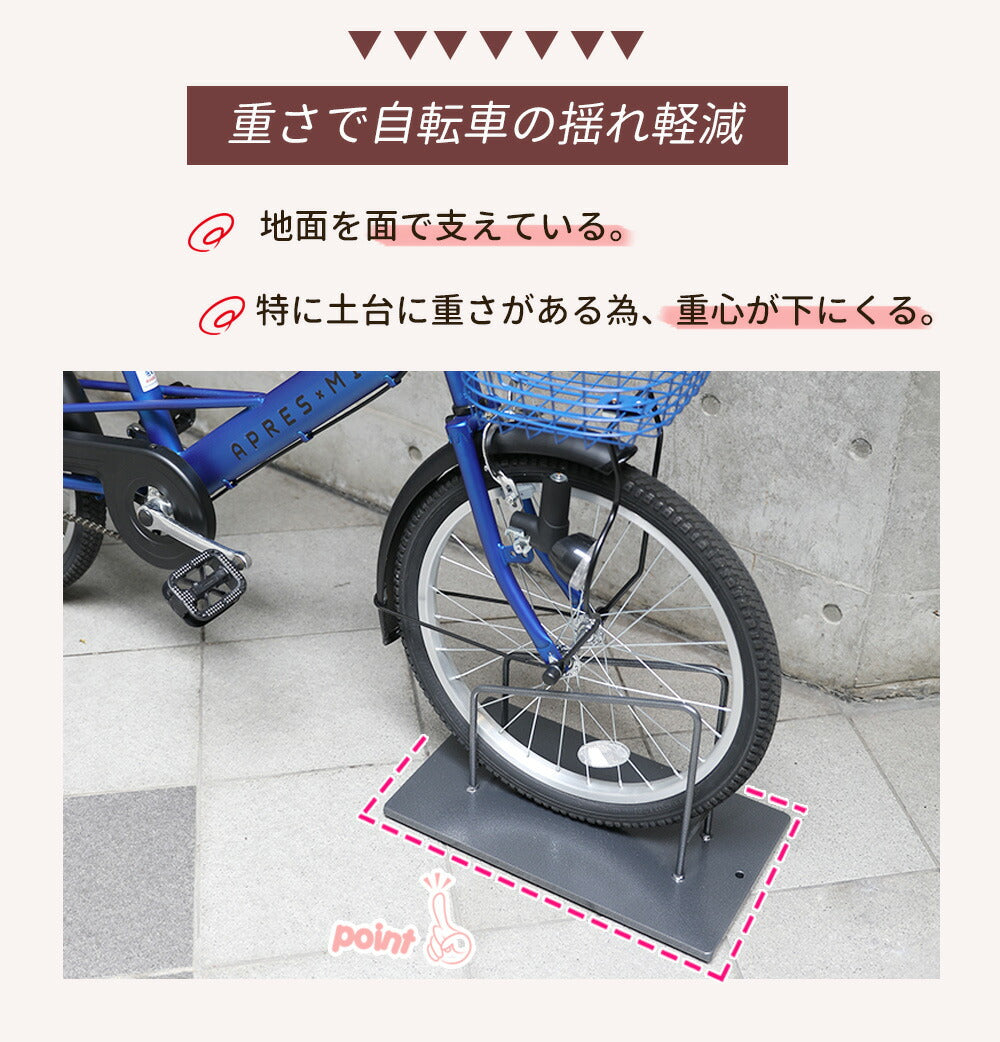 ※子供用椅子付等、重心が高い自転車は転倒の恐れがありますので、設置後安定しているかどうかご確認ください。