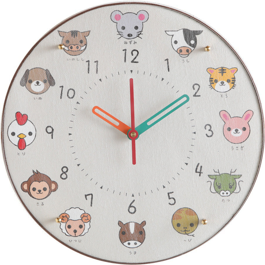 ねずみ 牛 とら うさぎ 竜 へび 馬 ひつじ さる にわとり 犬 いのしし アニマル ギフト プレゼント 出産祝い 入園準備 入学準備 贈り物 寝室 リビング 入学祝い 2歳 3歳 4歳 5歳 6歳 7歳 こども用 時計の勉強 男の子 女の子 静音 静か 幼児 園児 幼稚園生 小学生 誕生日プレゼント 連続秒針 壁時計 掛時計 可愛い 教育 子供時計 クリスマスプレゼント 学習時計 クロキッズ