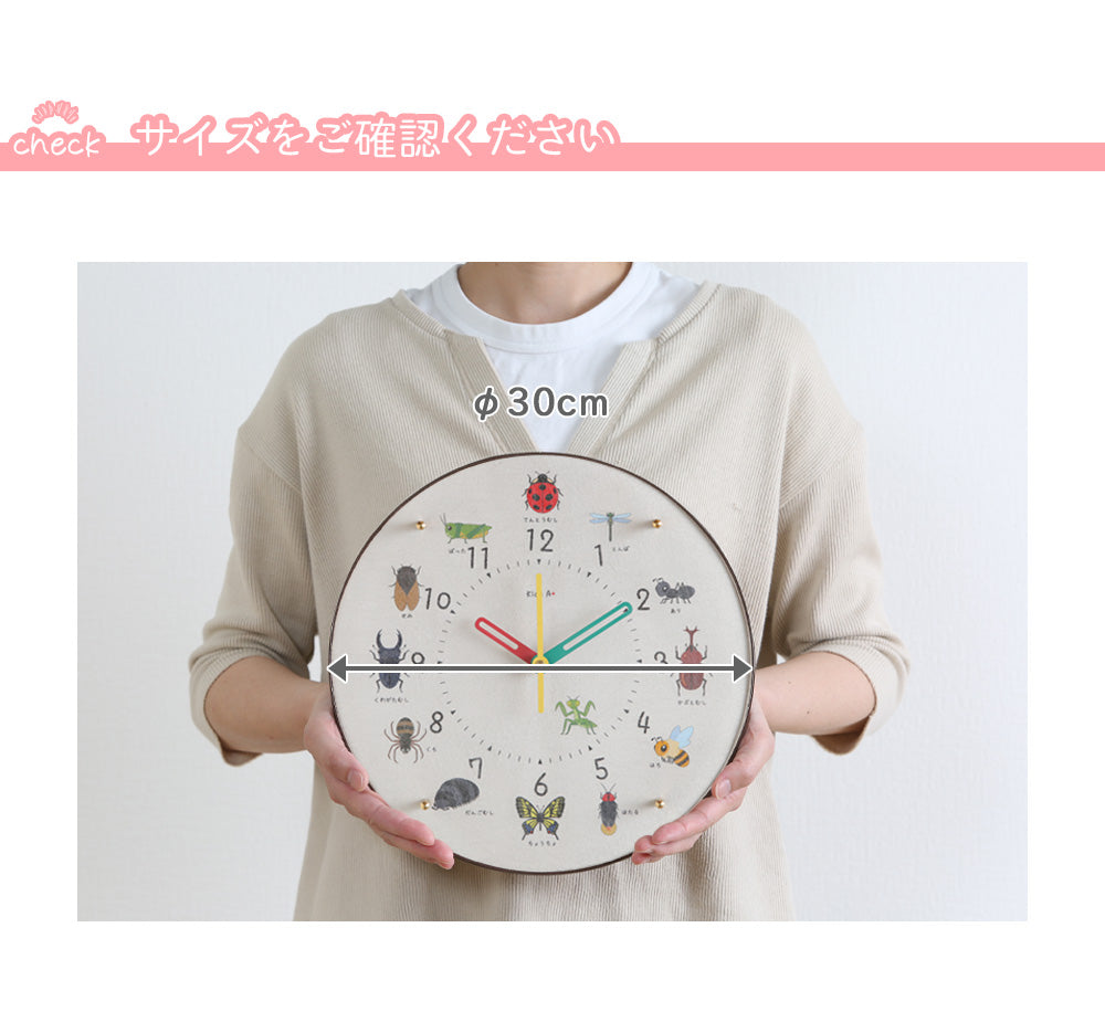 入学準備 時計学習 キッズクロック 秒針あり 静か 静音 幼児教育 幼児 園児 未就学児 小学生 壁時計 掛時計 教育 子供時計 児童館 児童センタ― 虫 昆虫 てんとう虫 テントウムシ トンボ あり 蟻 アリ カブトムシ 蜂 ハチ ホタル 蛍 ちょうちょ 蝶々 ダンゴムシ ダンゴ虫 だんごむし くも 蜘蛛 クワガタムシ くわがたむし セミ 蝉 バッタ SKPムーブメント クロキッズ こどものしゅみ 子供の趣味
