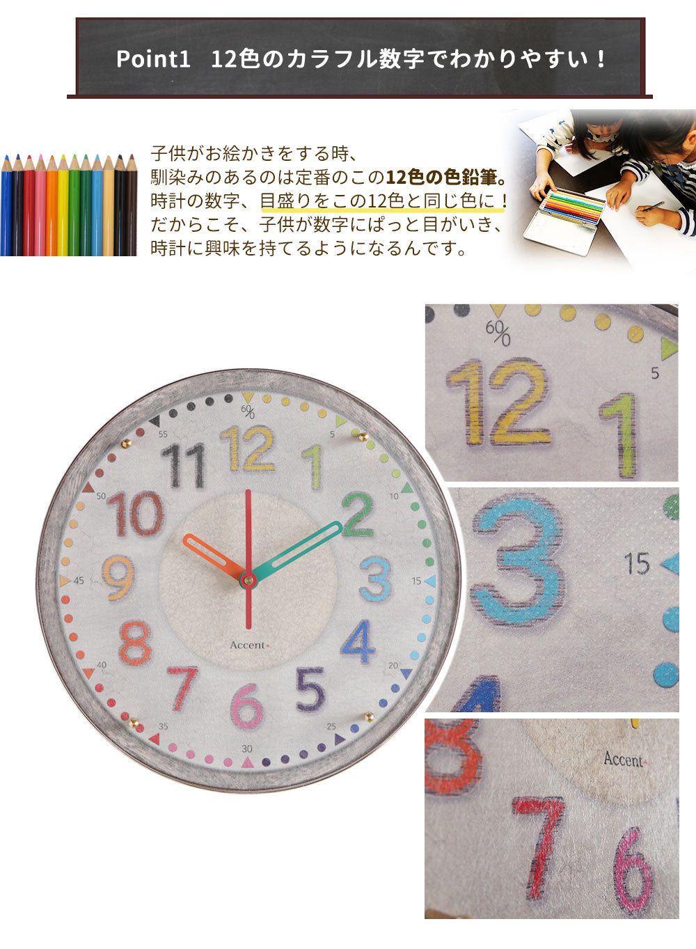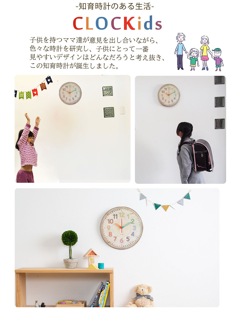 CLOCKids クロキッズ 電波時計 掛け時計 キッズ時計 キッズクロック スイープ 子供 電波 幼稚園 知育教室 子ども こども おしゃれ オシャレ カラフル インテリア かわいい 可愛い 北欧 ナチュラル シンプル アラビア数字 秒針あり ほとんど音がしない 静か 連続秒針 アクセントプラス Accent+ アクセントプラス A+ Aplus Aプラス