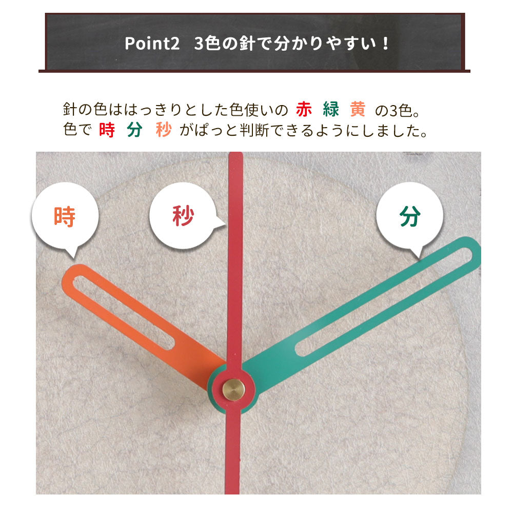 目盛りの色も数字と同じ色なので、針の指している位置が「●色だから●時」と直感的にわかります。