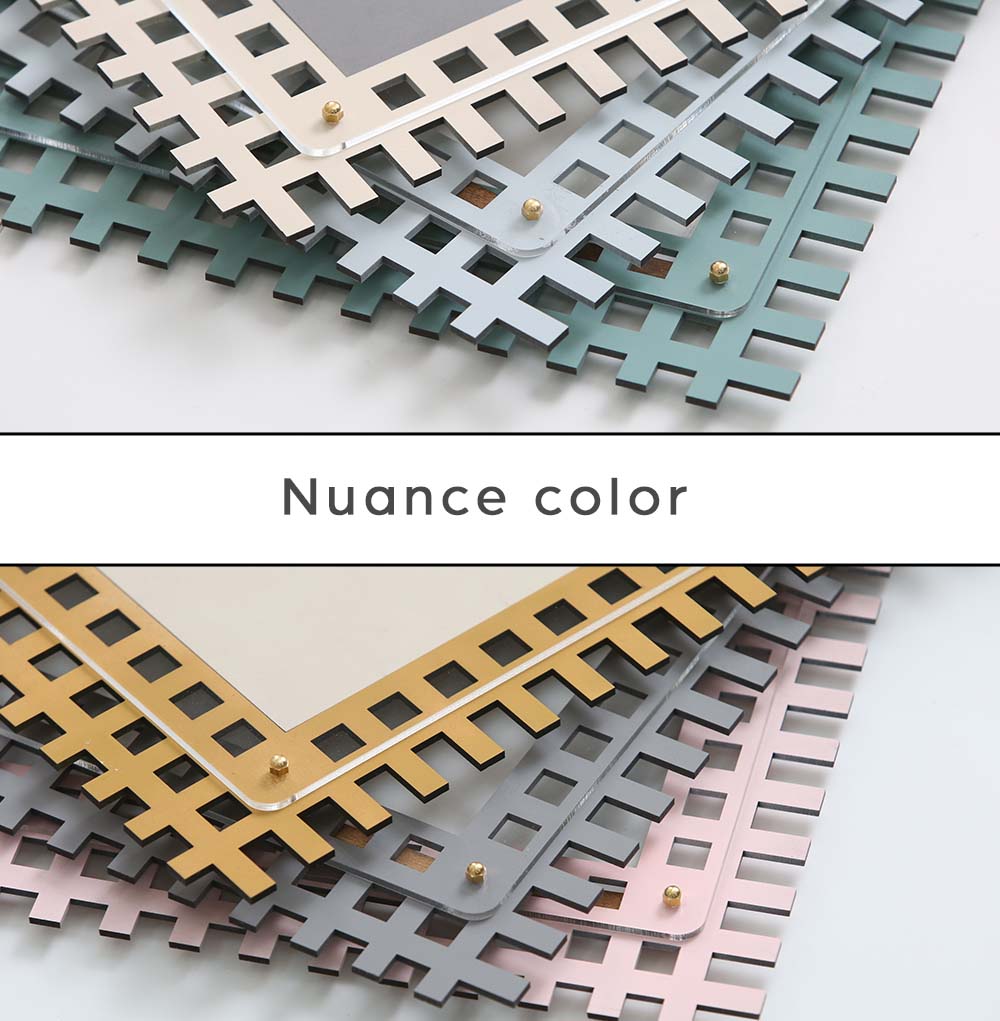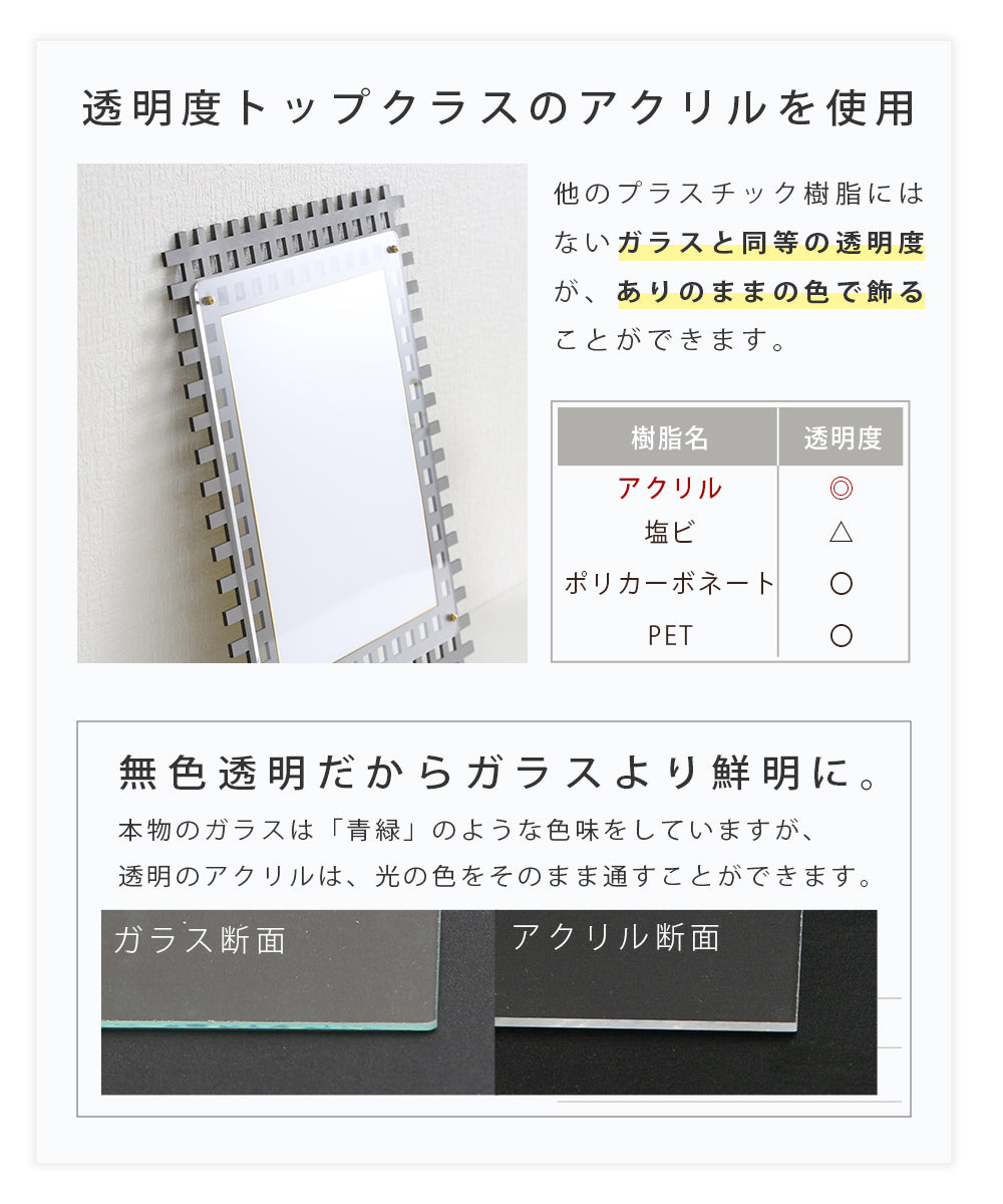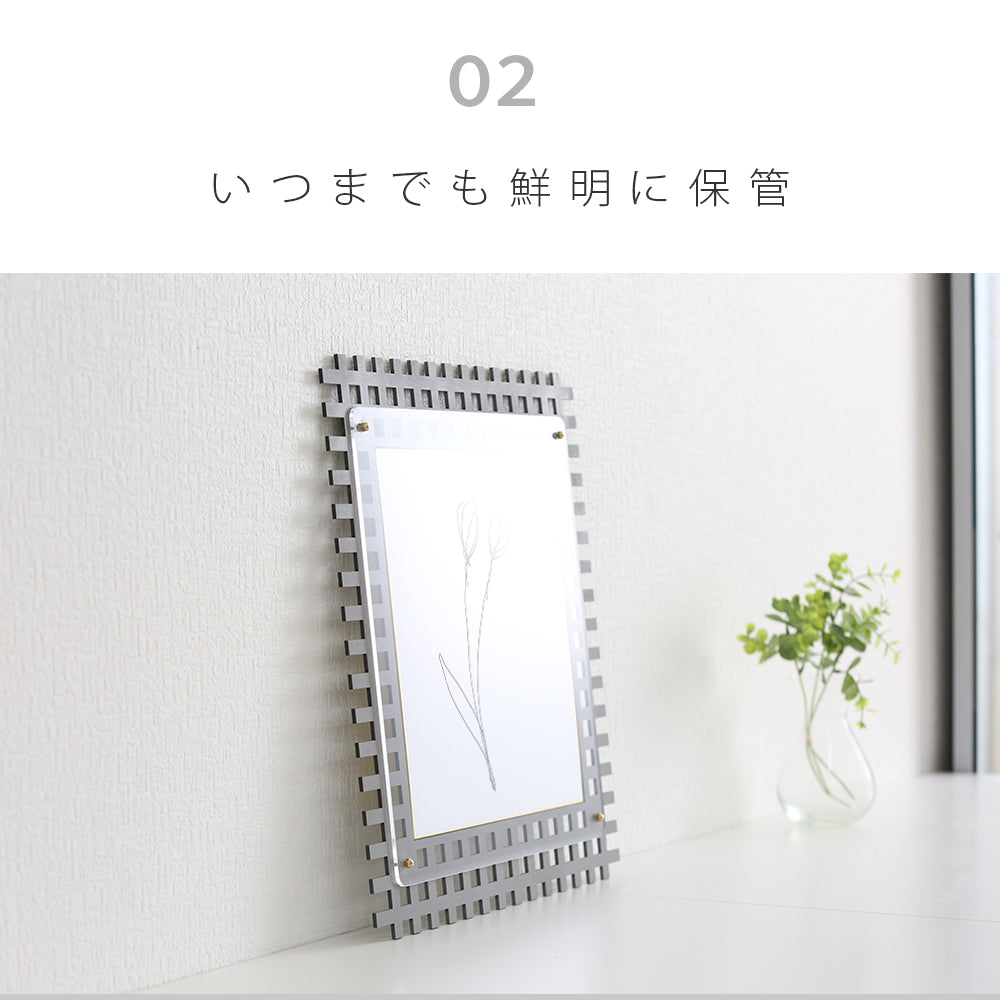 格子フレームに使用している表面のカバーにはアクリルを使用しています。透明度の高いアクリルは、収納した色紙のありのままの色で、美しく見せることができます。趣味の作品や、記念日の似顔絵、思い出の色紙など、美しい色合いの色紙たちは空間を華やかにしてくれます。