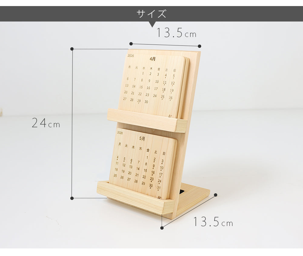 デスク 卓上 カレンダー 暦 四月始まり 4月はじまり 四月はじまり 二か月表記 二ヶ月表記 2か月表記 2ヶ月表記 月曜始まり 木製 ヒノキ ひのき 檜 桧 紙不使用 ギフト 贈り物 プレゼント 入学祝い 卒業祝い 新生活 国産 日本製